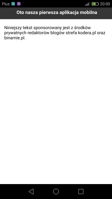 Tym sposobem po zatwierdzeniu wszystkiego przyciskiem Finish stworzyliśmy pierwszą aplikację mobilną – standardowe Hello World.