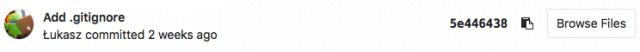 Pojawił się również pierwszy commit, w którym dodałem plik .gitignore: