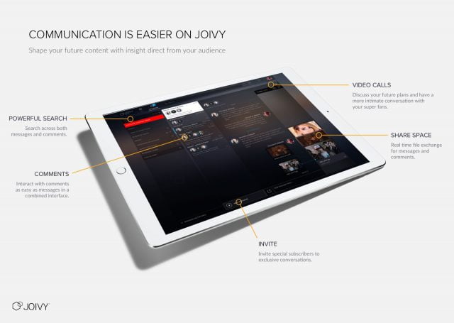 Joivy umożliwia tworzenie tematycznych / profesjonalnych sieci społecznościowych, które mogą być naturalnym i bardzo prostym uzupełnieniem kanałów na YouTube. Mogą one przekształcić subskrybentów, czyli jednokierunkową listę odbiorców w zwartą i wymieniającą się informacjami grupę użytkowników tematycznej sieci społecznościowej, której właścicielem jest autor kanału. Dzięki temu odbiorcy kanału, poprzez współudział w sieci społecznościowej, mogą zacząć współpracować przy tworzeniu kanału z innymi, którzy są zainteresowani podobną tematyką. Joivy jest narzędziem, które ma za zadanie wszechstronnie wspierać takie działanie.