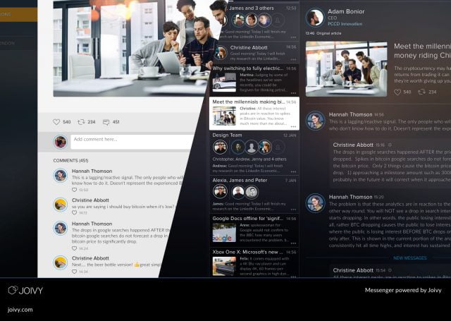 W Joivy – platformie umożliwiającej budowanie tematycznych sieci wertykalnych – został zaprojektowany system umożliwiający przeniesienie dyskusji pod artykułami bezpośrednio do komunikatora. Jest to nowatorskie podejście, dzięki któremu można nie tylko brać udział w rozmowie w czasie rzeczywistym, ale również poznawać nowych i ciekawych ludzi. Użytkownik może prowadzić w Joivy Messengerze dyskusje ze swoimi znajomymi oraz na dany temat z obcymi, ale kompetentnymi ludźmi ze swojej wertykalnej społeczności.